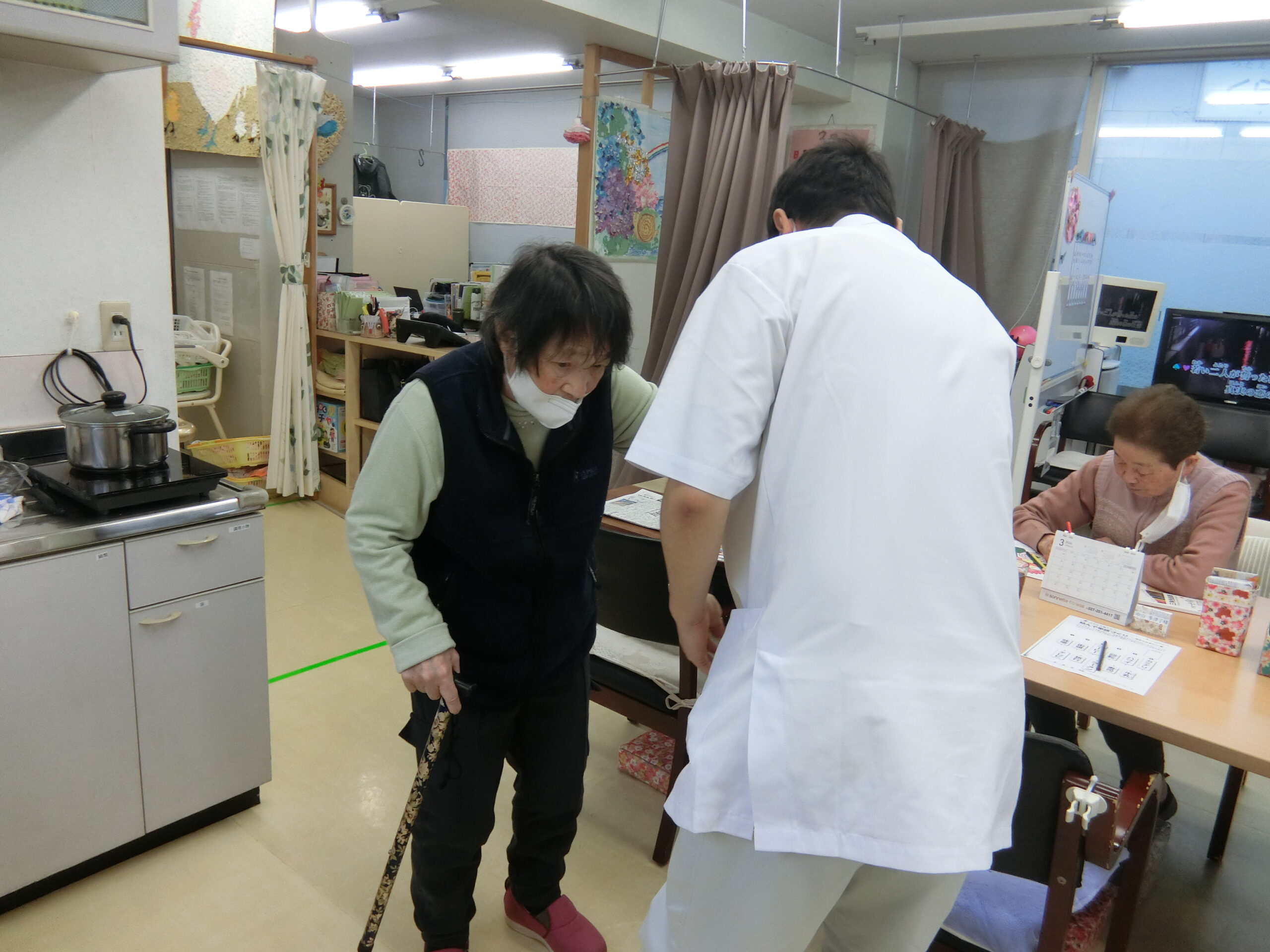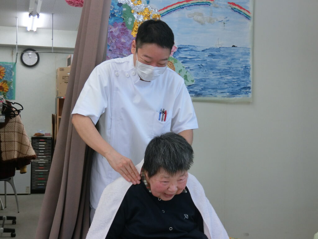 機能訓練とマッサージの様子